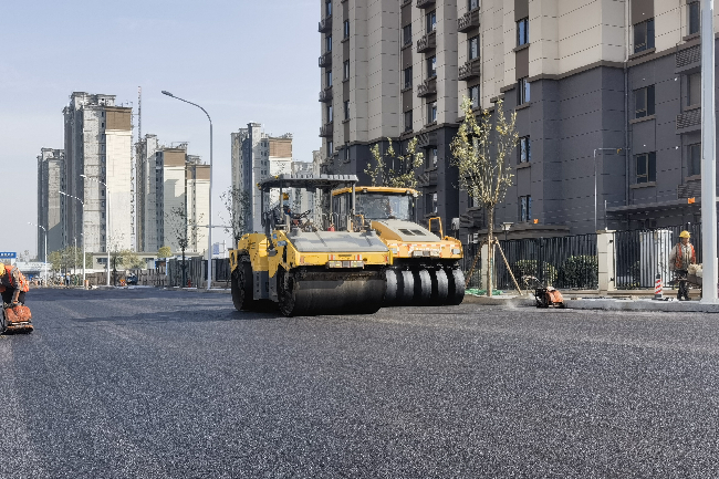 濟南起步區總部經濟產業園區四期安置東區項目完成保交房區域瀝青面層攤鋪作業