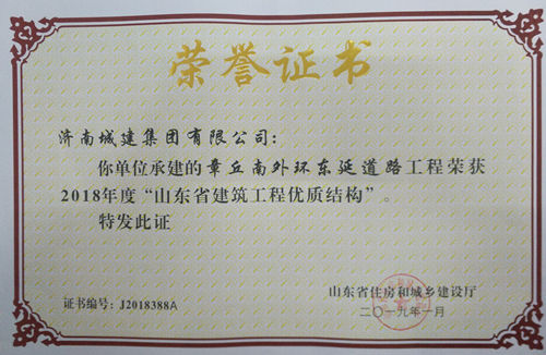 章丘南外環(huán)東延道路工程被評為2018年度“山東省建筑質(zhì)量泰山杯工程”