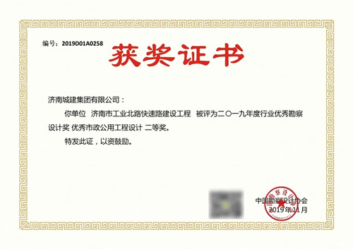 濟南市工業北路快速路建設工程被評為2019年度行業優秀勘察設計獎優秀市政公用工程設計二等獎