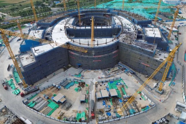項目的成長軌跡交織著速度與智慧。工程建設初期,項目團隊僅用40天完成全部2159顆樁基施工,30天完成16.6萬立方米的土方開挖和清運。主體施工階段,團隊40天內完成5680噸鋼筋安裝和3.8萬立方米混凝土澆筑工作,為主體結構封頂創造了有利條件。項目從破土動工到主體封頂,所有關鍵節點均提前或按時完成,以“城建速度”刷新大型場館建設紀錄。