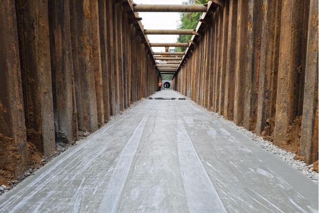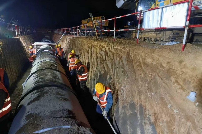 在廣東省湛江市中心城區重要點位地下管網更新改造項目一期工程現場,項目建設者已完成金德路與麻遂路交叉口設施設備更新項目350米鋼板樁支護、200米DN1650雨水管道安裝。項目部通過增加施工人員與機械、利用夜間施工趕進度等方式,積極協調解決柳青路南山涵洞、麻赤鐵路的圖紙與拆遷問題,為后續進場施工掃清障礙。